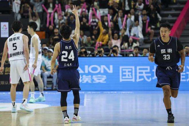 本场决赛,广东队以多点开花的进攻抢占开局,浙江队则依靠朱俊龙、张洪硕的进攻火力紧追不舍。随着比赛的深入,广东队逐渐提升攻守强度并于次节将分差扩至两位数。此后双方三分对飚点燃全场氛围,徐杰半场命中5记三分帮助球队以53-42领先。